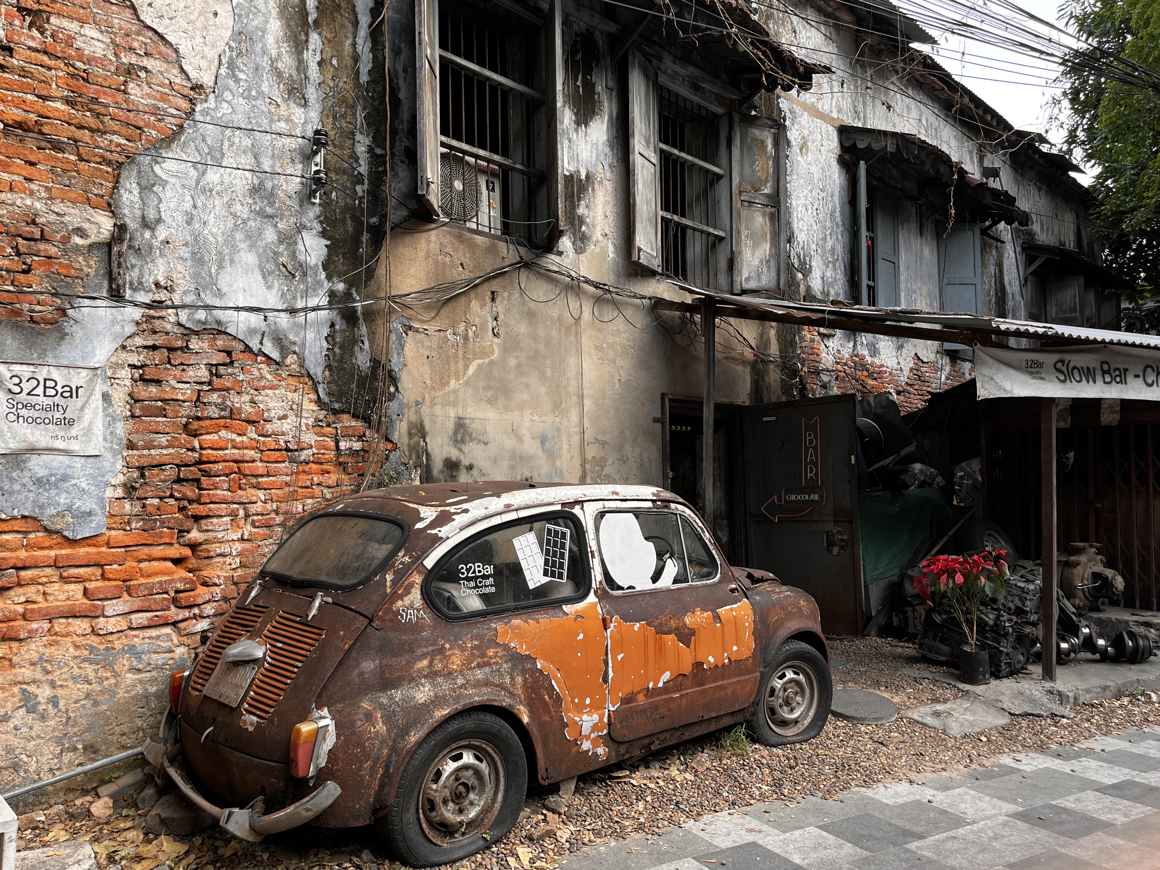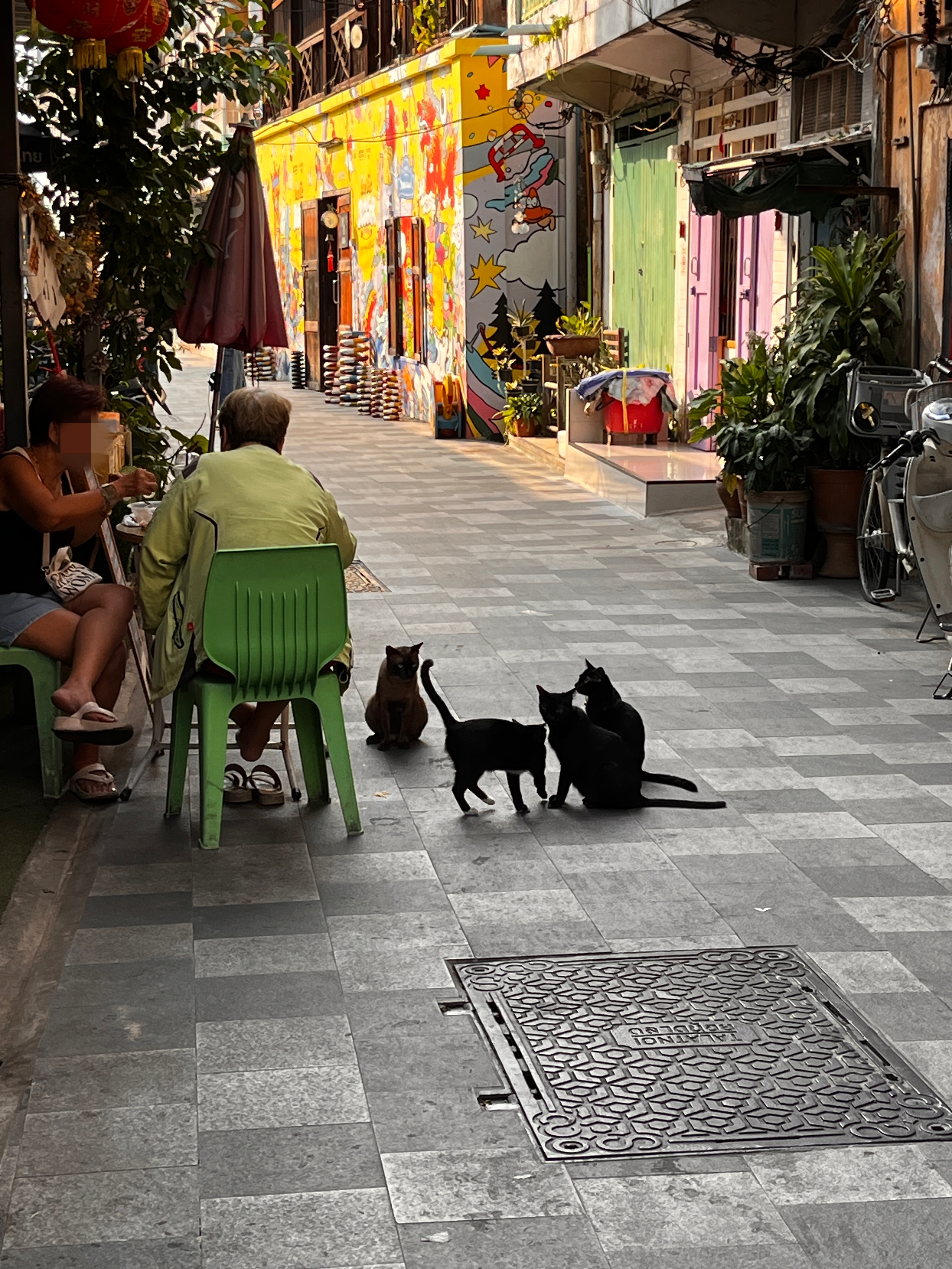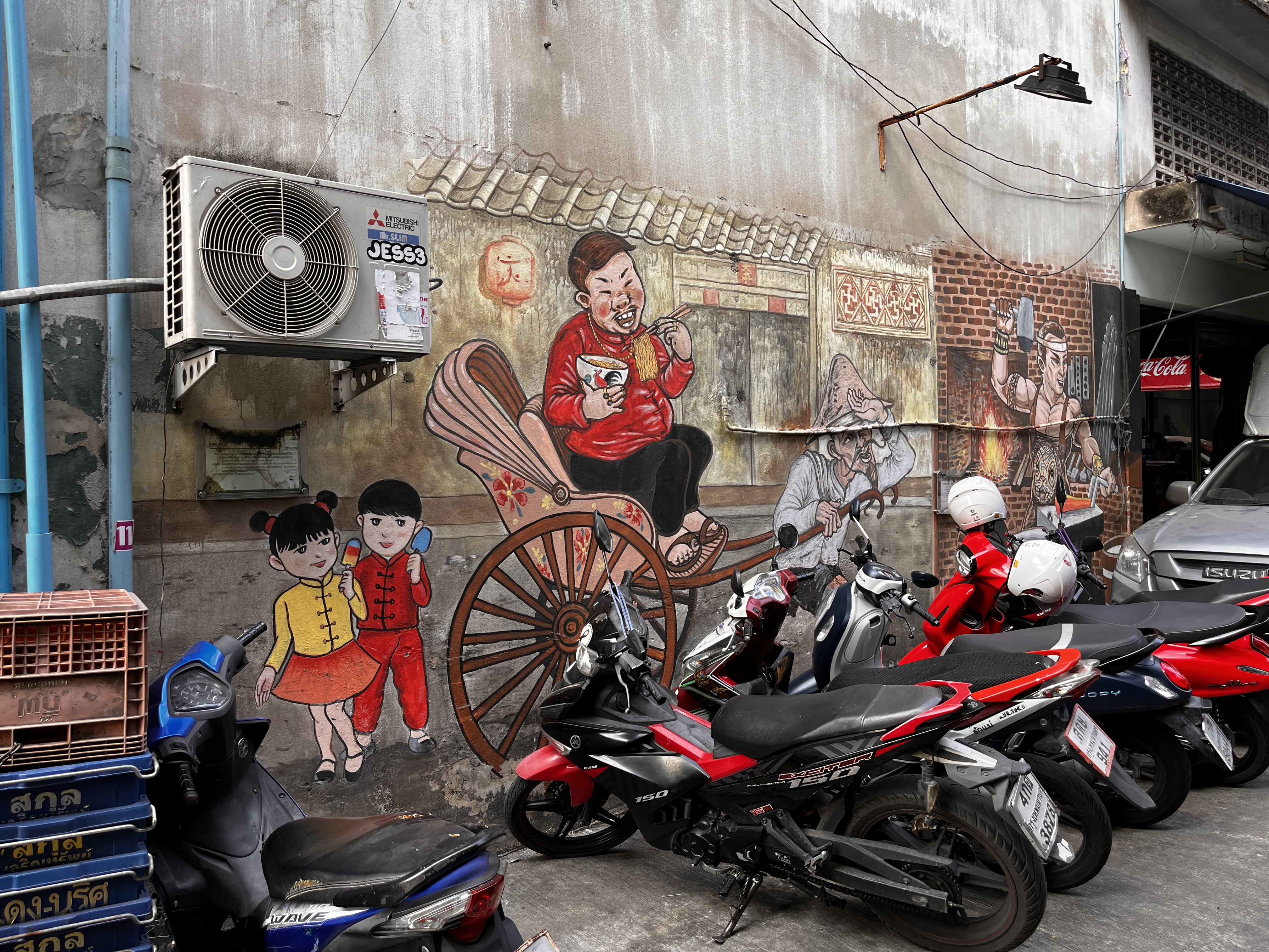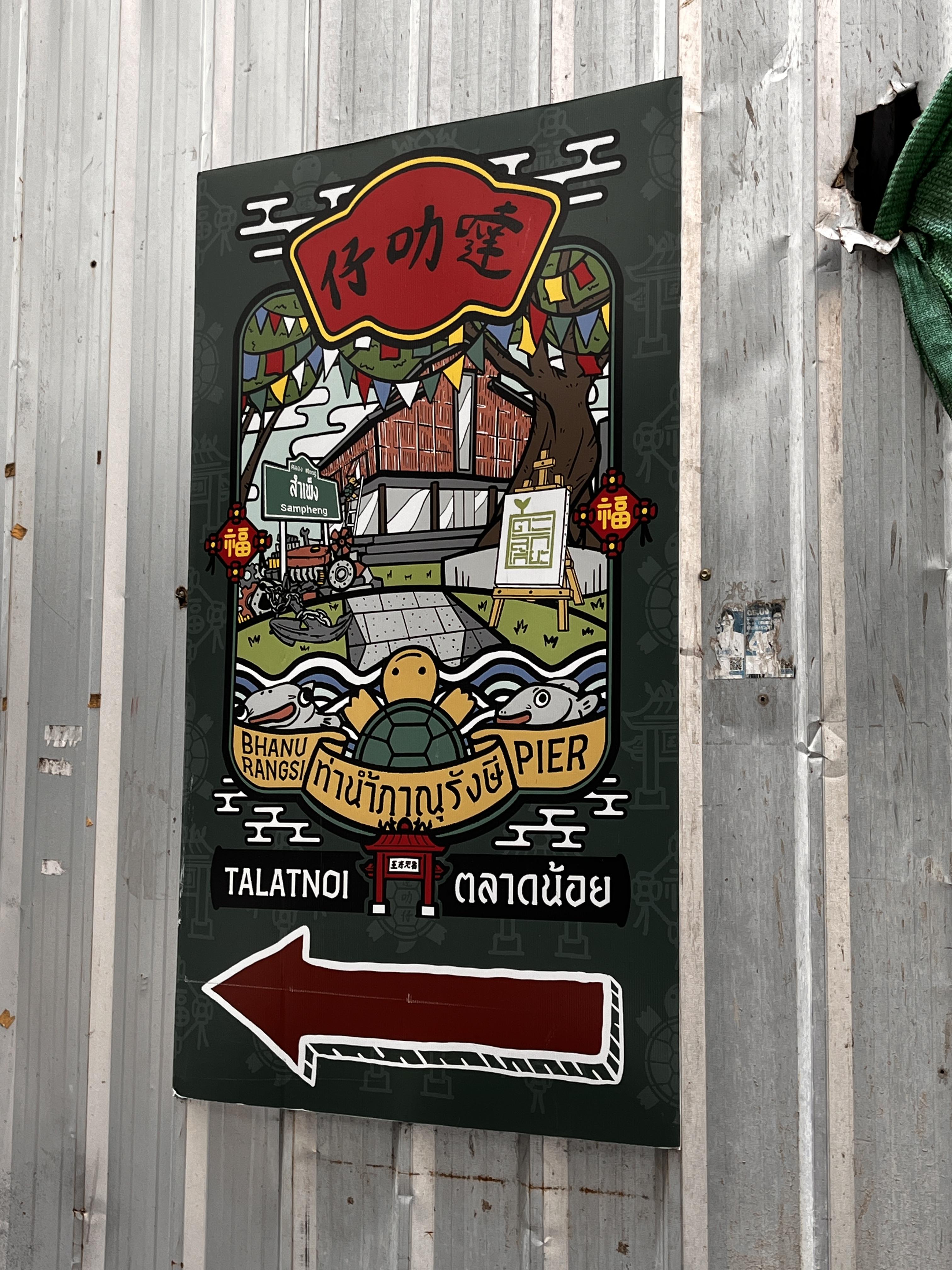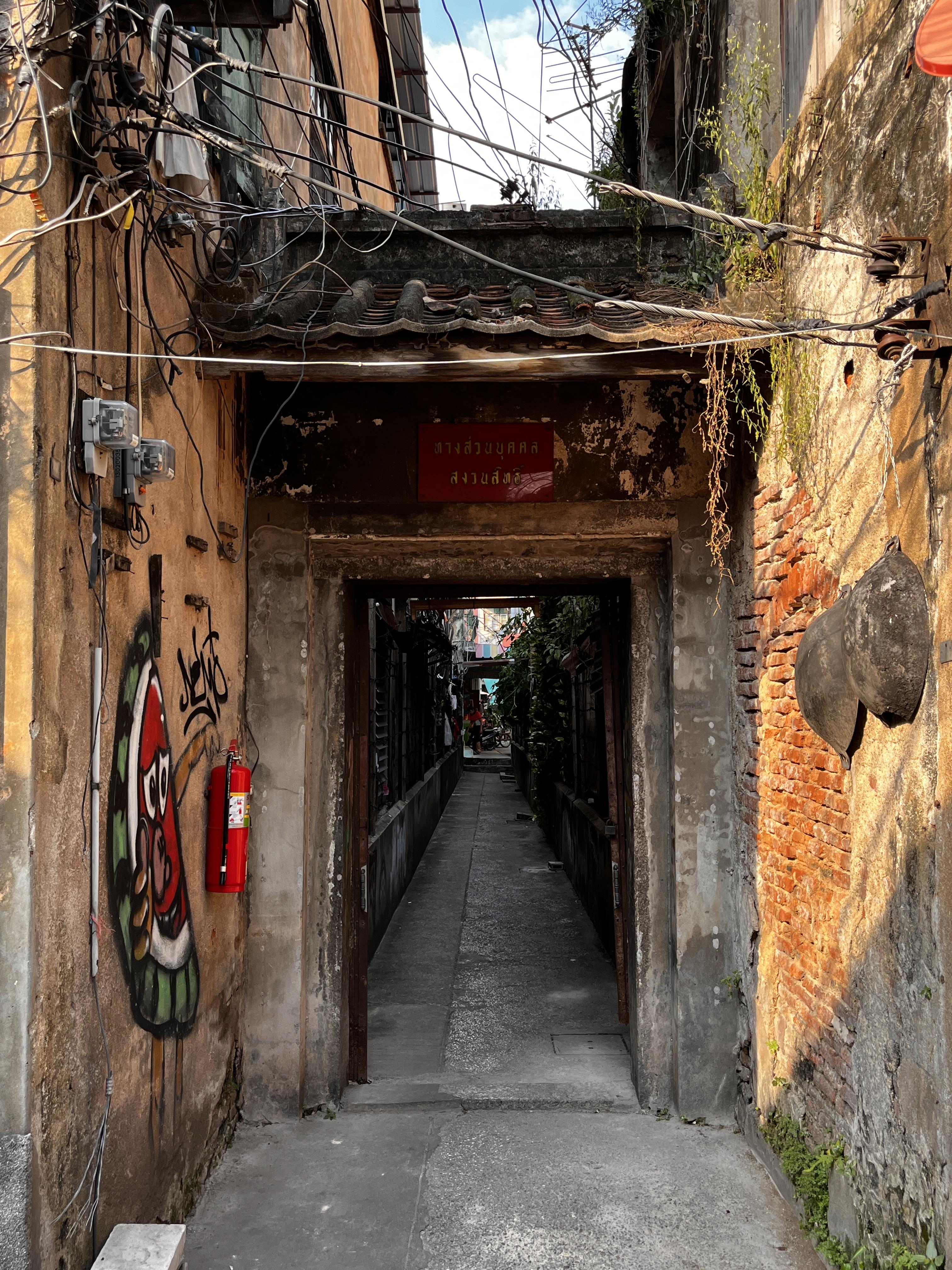 벽화가 있고, 폐공장 2층 카페, 그외에 멋진 카페들과 짜오프라야강을 볼 수 있는 골목길!