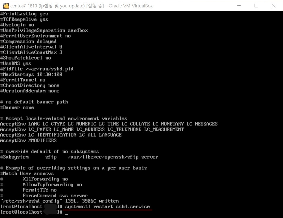 # systemctl restart sshd.service 로 재시작 해줍니다.