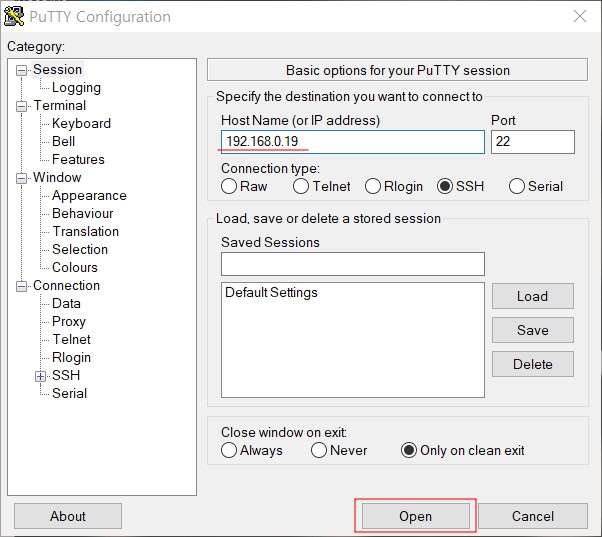 바꾼 ip를 입력 후, Open을 눌러 접속을 합니다.